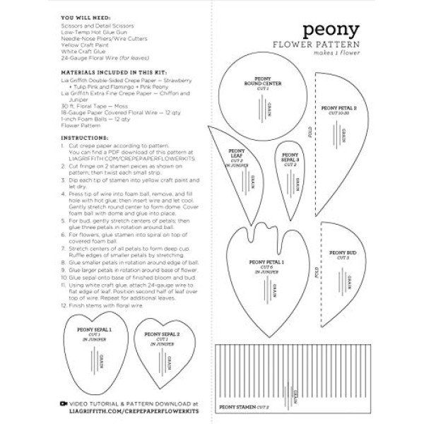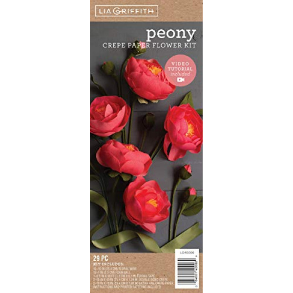Qty: 29 pieces, makes 6 flowers and 6 buds Colour: assorted colours Size: Assorted Sizes Kit Includes 12 pcs 10\; Product description Make 12 crepe paper Peony flowers with double sided crepe paper in colors inspired by nature – Strawberry & Tulip Pink and Flamingo & Pink Peony with leaves in extra fine Chiffon and Juniper. The Lia Griffith crepe paper is made in Germany by Werola and designed specifically for exquisite handcrafting. The kit includes floral wire, floral tape, foam balls, instructions and a printed pattern.; Product description Make 12 crepe paper Peony flowers with double sided crepe paper in colors inspired by nature – Strawberry & Tulip Pink and Flamingo & Pink Peony with leaves in extra fine Chiffon and Juniper. The Lia Griffith crepe paper is made in Germany by Werola and designed specifically for exquisite handcrafting. The kit includes floral wire, floral tape, foam balls, instructions and a printed pattern.; Make 12 crepe paper Peony flowers with double sided crepe paper in colors inspired by nature – Strawberry & Tulip Pink and Flamingo & Pink Peony with leaves in extra fine Chiffon and Juniper. The Lia Griffith crepe paper is made in Germany by Werola and designed specifically for exquisite handcrafting. The kit includes floral wire, floral tape, foam balls, instructions and a printed pattern.