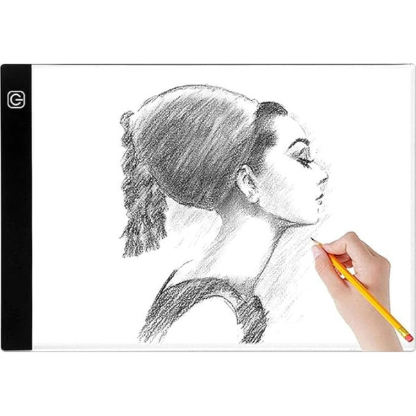 Portable & Ultra Slim: A4 Light Box: 335 x 235 mm, Thickness: 0.47 cm, Weight: 380 g, Ultra-thin and convenient to carry. The A4 LED light box has a power supply with USB cable (153 cm length), which can be easily connected to any USB port such as computer, USB adapter or even a power bank, so you can enjoy the convenience of working anywhere you like. A4 drawing light box with touch switch, 3-level brightness adjustable, by pressing the control button and power button. It is bright enough and with eye-friendly technology, flicker-free and emits very little heat, which ensures safe long-term use. The LED light pad is ideal for diamond painting, cutting vinyl, stencil, 2D animation, calligraphy, embossing, scrapbooking, tattoo transfer, sketching, sewing, X-ray viewing, drawing, etc. This LED sign light pad is a great gift for children, Christmas, birthdays or other holidays. -; Product description A4 LED light box with 3 adjustable brightness levels, together with this A4 light box, you will also receive a USB power cable. Specifications: Material: Acrylic Dimensions: 337 x 235 x 6.3 mm. Active area: 335mm x 235mm Working Voltage: DC 5V Rated Power: 1.8W Interface: Micro-USB. Use: Professional copies of animations, cartoons, tattoo breaks, craft projects, fabric design, photography, film transmission, also great for removing vinyl stickers. A4 Light Box Questions and Answers: - What are the measurements? - Light box in A4 format: approx. 31 x 23.5 cm (A4 model). Thickness: 0.47 cm. And it is lightweight yet durable, so you can take it with you. - How to charge this A4 light box? Comes with a USB power cable that works in any standard USB wall charger plug. - Is it bright enough to shine through thicker papers and are the lights dimmable? - Bright enough to make your drawing easy and clear, and three-level adjustable brightness by pressing the touch switch. - Does it resist the pressure of heavy pencils? - Yes, it is made of very strong and durable acrylic material, although the entire pad is very thin. - Does it work for diamond painting? Yes, can be used for diamond painting and is perfect for this. - - - -; Product description A4 LED light box with 3 adjustable brightness levels, together with this A4 light box, you will also receive a USB power cable. Specifications: Material: Acrylic Dimensions: 337 x 235 x 6.3 mm. Active area: 335mm x 235mm Working Voltage: DC 5V Rated Power: 1.8W Interface: Micro-USB. Use: Professional copies of animations, cartoons, tattoo breaks, craft projects, fabric design, photography, film transmission, also great for removing vinyl stickers. A4 Light Box Questions and Answers: - What are the measurements? - Light box in A4 format: approx. 31 x 23.5 cm (A4 model). Thickness: 0.47 cm. And it is lightweight yet durable, so you can take it with you. - How to charge this A4 light box? Comes with a USB power cable that works in any standard USB wall charger plug. - Is it bright enough to shine through thicker papers and are the lights dimmable? - Bright enough to make your drawing easy and clear, and three-level adjustable brightness by pressing the touch switch. - Does it resist the pressure of heavy pencils? - Yes, it is made of very strong and durable acrylic material, although the entire pad is very thin. - Does it work for diamond painting? Yes, can be used for diamond painting and is perfect for this. - - - -; A4 LED light box with 3 adjustable brightness levels, together with this A4 light box, you will also receive a USB power cable. Specifications: Material: Acrylic Dimensions: 337 x 235 x 6.3 mm. Active area: 335mm x 235mm Working Voltage: DC 5V Rated Power: 1.8W Interface: Micro-USB. Use: Professional copies of animations, cartoons, tattoo breaks, craft projects, fabric design, photography, film transmission, also great for removing vinyl stickers. A4 Light Box Questions and Answers: - What are the measurements? - Light box in A4 format: approx. 31 x 23.5 cm (A4 model). Thickness: 0.47 cm. And it is lightweight yet durable, so you can take it with you. - How to charge this A4 light box? Comes with a USB power cable that works in any standard USB wall charger plug. - Is it bright enough to shine through thicker papers and are the lights dimmable? - Bright enough to make your drawing easy and clear, and three-level adjustable brightness by pressing the touch switch. - Does it resist the pressure of heavy pencils? - Yes, it is made of very strong and durable acrylic material, although the entire pad is very thin. - Does it work for diamond painting? Yes, can be used for diamond painting and is perfect for this. - - - -