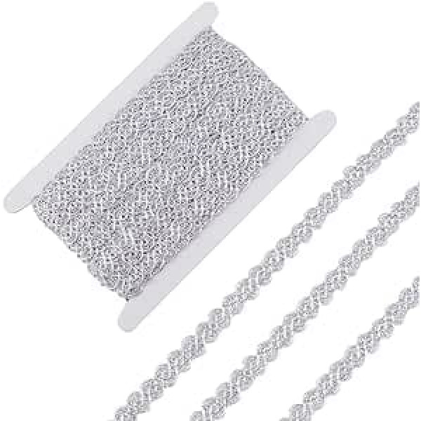 GORGECRAFT 15 Yard Silver Metal Mesh Decoration 15 mm Wide Filigree Wavy Lace Ribbon Gimp Braided Trims Wave Shape Glitter Clothing Accessories for DIY Clothing Sewing