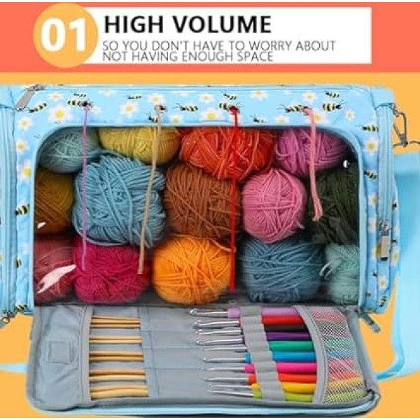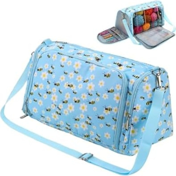 Coopay Häkel-Aufbewahrungstasche, Strick-Tragetasche, Häkeltaschen-Organizer, Basteltaschen zum Basteln, Nähen, Kreuzstich oder Sticken, Crafters Tasche, Strickprojekt Reisetasche Bienenmuster