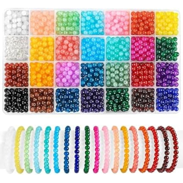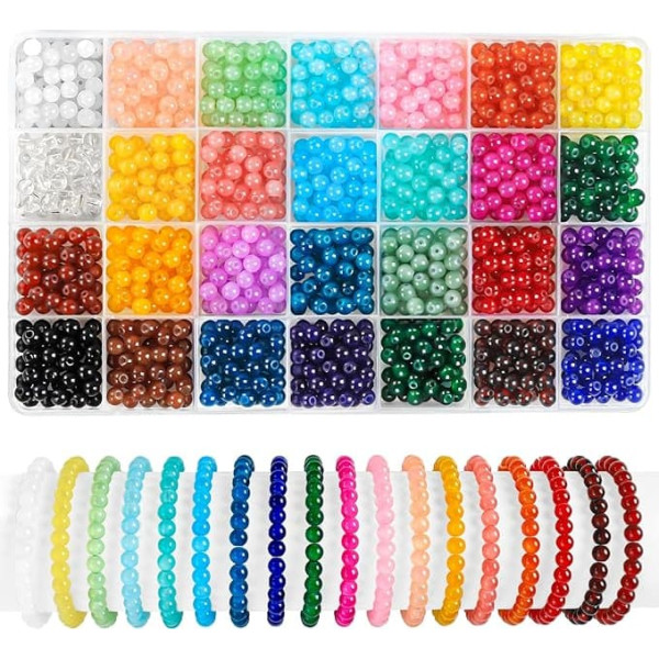 Glass bead kit: you will receive 840 round beads and 2 elastic crystal cords. Each bead is stored by categories, so you can easily find any colour you want. Glass beads kit is a must for bracelets and jewellery making lovers. RICH COLOR CHOICE There are 28 jelly colors, 6mm beads for you to choose, so you can effortlessly match them to your projects. Whether you prefer bright summer tones, warm autumn tones or cool winter tones, this glass bead set can bring you endless enjoyment and inspiration for your craft projects. Material: these round glass beads are made of high quality material, with smooth surface, vivid colors and unique luster, which is suitable for making fine jewelry, adding a sense of luxury to your creations. Make your unique gift for your family and friends on holiday occasions Size: the glass beads for jewellery making measure 0.24 inches / 6 mm and the holes are 1 mm in diameter, which is an ideal decoration for you to make certain bracelets, bangles, earrings, necklaces, rings, key rings and so on. Wide application: our imitation jade beads can be widely used in jewellery making, home decor, crafts, DIY projects, wedding decor and more. Children can use them for educational crafts to improve their creativity and fine motor skills, while adults can create unique gifts and decorations.; Product description 840 Round Glass Beads for Bracelet Making Kit; Product description 840 Round Glass Beads for Bracelet Making Kit; 840 Round Glass Beads for Bracelet Making Kit