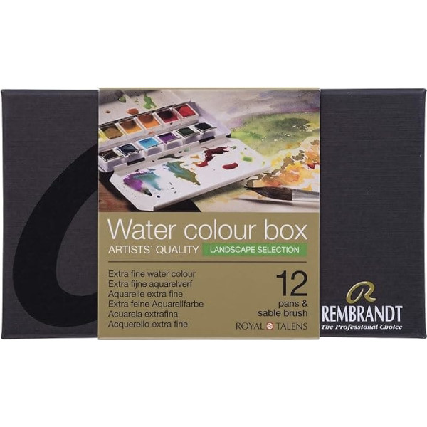 Rembrandt Water Colour Box Landscape Selection Extra Fine Watercolour Paint, Metal Box with 12 Bowls Optimised for Landscapes Including Brush