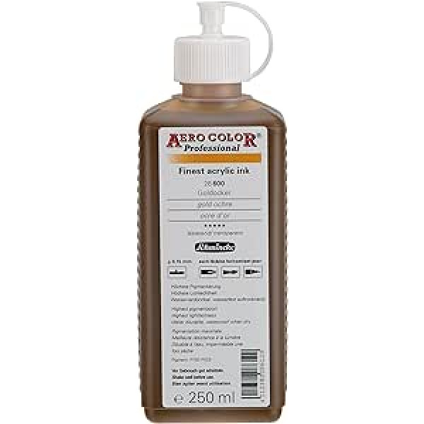 Schmincke - Aero Color Professional, Gold Docker 250 ml, 28600027, Fine-Liquid, Colour-Strong Acrylic Paint for Acrylic Painting, Airbrush, Mixed Media, Acrylic Ink
