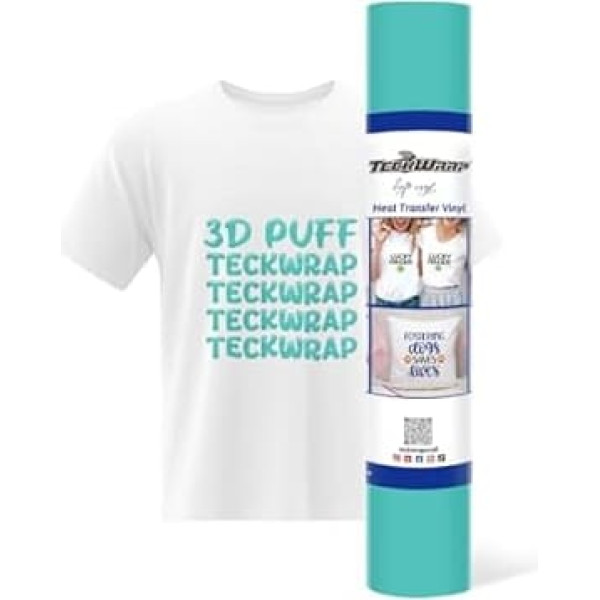 3D Puff Heat Transfer Vinyl - Expands under heat, creating a matte 3D effect with texture and thickness. Puff vinyl has a matte, smooth surface before heating and it transforms into a flocked textured surface when heated. Brings you an innovative DIY experience. Easy to weed, good elasticity and washable. - Swollen HTV vinyl has excellent elasticity, prevents cracking or fading even after stretching and washing. Always wait 24 hours before the first wash and turn the shirt inside out when washing. (Do not wash with hot water) Test application is always recommended. - Foaming HTV vinyl works impressively well with all kiss cutters. It is incredibly thin and perfect for use with a household iron or heat press. It is always recommended to test a small part of the fabric before use for the best results. STRONG ADHESIBILITY WITHOUT PEEL OFF: Puffy HTV with self adhesive backing provides incredibly strong stickiness that adheres seamlessly to the fabric with an optimal ironing temperature. Say goodbye to fading and peeling after repeated washing. Easy to use for craftsmen and amateurs. Wide application and light up your style. - TECKWRAP HTV vinyl is easy to apply to sports nets, cotton, polyester, viscose, viscose non-woven fabrics, oxford fabrics and even cotton/polyester blends. Light up your exclusive style by creating custom designs on t-shirts, tote bags, hats, aprons, pillows, shoes and more.