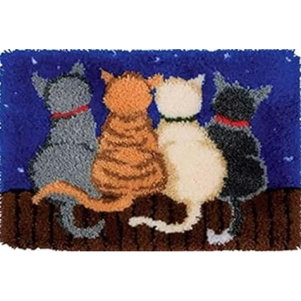 YOOTOM Latch Rug Set, Latch Rug Set, DIY Handmade Crochet Rug, Knotted Cushion, Yarn, Handmade, Tapestry, Cat Pattern Pre-Printed 20 x 15 Inches