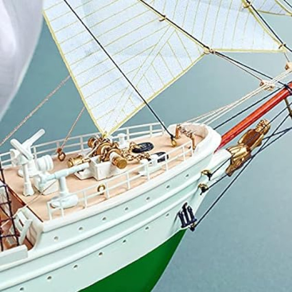 Ship model made of wood and plastic, Spanish school boat Juan Sebastian Elcano in scale 1:250 Once completed, the model is 455 mm long, 255 mm high and 110 mm wide Comes with prefabricated plastic boat hull. Gravure print details. Laser cut plate parts, hardwoods, plastic, brass, cast iron and candles Includes the figure, flag and nameplate to build the large sailing ship Esmeralda, which is a school ship just like the Elcano, but from the Chilean Navy Step-by-step video guide in DVD format for computers (PC and Mac) with explanatory videos. Printed instructions are not included. Remember that to see the full video guide for free, you must also visit the manufacturer's YouTube channel, Artesanía Latina It takes its name from the Spanish explorer Juan Sebastián Elcano, captain of the expedition - after the death of Fernando de Magallanes - who completed the first circumnavigation of the world in 1522. The Juan Sebastián Elcano was launched in Cádiz in 1927 and serves as a training ship of the Navy for the Marine Guards In the second semester of the fourth year of their career at the Naval Military School, they undertook a teaching cruise, a six-month trip to America, and a journey of about twenty thousand miles. Currently, it continues to sail on the seas of the planet as it is still active