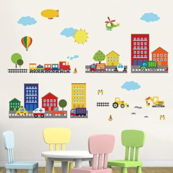 decalmile Wandtattoo Transporte Autos Fahrzeuge Wandsticker Städte Haus Wandaufkleber Kinderzimmer Wohnzimmer Schlafzimmer Wanddeko