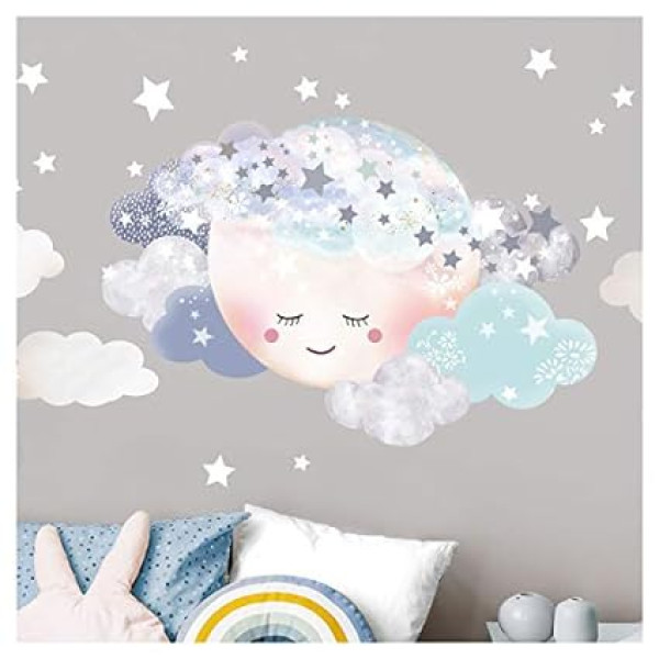 Little Deco DL449-1 Wall Sticker Children's Room Boy Moon & Clouds I Moon 1 - 75 x 50 cm I Wall Sticker Baby Wall Sticker Decoration Room