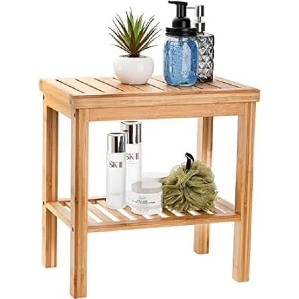 Soujoy Bamboo Shower Bench, Bath Seat Stool with Non-Slip Feet, Spa Footrest Safety Stool, Storage Shelf for Shampoo Towel, Works Indoor, Bedroom, Garden Leisure