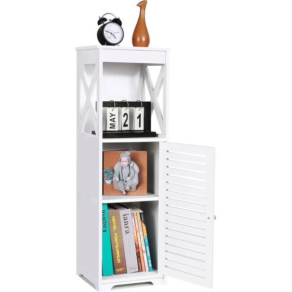 Oudie Waterproof Bathroom Cabinet White Bathroom Storage Shelf Organiser with Daily Layer and 1 Cabinet Door (X Style)