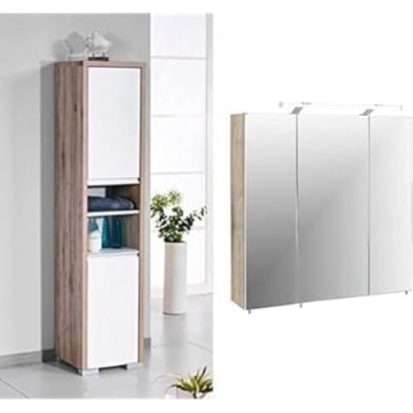 Schildmeyer Bello Tall Cabinet Wild Oak Decor 34.5 / 33 / 154.5 cm & Schildmeyer Trento Mirror Cabinet, Wood, Wild Oak, 70 x 16 x 75 cm