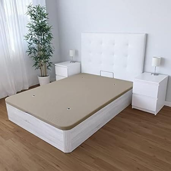 Wooden folding bed frame with reinforced 30 mm thick drawer with large capacity, reinforced lid with 4 vents and opening for easy opening Practical, robust and functional. With 29 cm internal volume and 36 cm total height Sides and fronts made of melamine and chipboard with a thickness of 30 mm. Easy to install. Includes set with the necessary tools for assembly Bed base system padded with breathable 3D fabric with four vents to prevent moisture and facilitate ventilation of the box spring and mattress Front opening system, hydraulic pistons with high performance and durability. Made in Spain; Product description Product Description Klappbares Bettgestell aus Holz, mit verstärkter Schublade mit großem Fassungsvermögen und verstärktem Deckel mit Schlitzmulde für einfaches Öffnen. 28 cm Innenvolumen und 34 cm Gesamthöhe Seiten- und Vorderseite aus Melamin und 30 mm dicken Spanplatten von ausgezeichneter Qualität. Deckel des Bettkastens mit Basissystem, gepolstert mit atmungsaktivem 3D-Gewebe mit vier Belüftungsventilen, aus hochfestem Spanplatten. Frontöffnungssystem mit hoher Leistung und Haltbarkeit Möbel als Kit mit einfacher Montage, nur die Schublade montieren und anschließend den Deckel anschließen, inklusive Montageanleitung Bitte beachten Sie das Video zur Montage auf dieser Produktseite. Ohne Werkzeug Safety Warning This product is shipped by a national transport agency delivering the goods to the portal, and sometimes a single distributor can no longer go on the floors as it does not fit in some elevators. It is advisable to have two people to raise the bed over the stairs, because although it is disassembled, the lid is bulky. Please note this information before placing your order; Product description Product Description Klappbares Bettgestell aus Holz, mit verstärkter Schublade mit großem Fassungsvermögen und verstärktem Deckel mit Schlitzmulde für einfaches Öffnen. 28 cm Innenvolumen und 34 cm Gesamthöhe Seiten- und Vorderseite aus Melamin und 30 mm dicken Spanplatten von ausgezeichneter Qualität. Deckel des Bettkastens mit Basissystem, gepolstert mit atmungsaktivem 3D-Gewebe mit vier Belüftungsventilen, aus hochfestem Spanplatten. Frontöffnungssystem mit hoher Leistung und Haltbarkeit Möbel als Kit mit einfacher Montage, nur die Schublade montieren und anschließend den Deckel anschließen, inklusive Montageanleitung Bitte beachten Sie das Video zur Montage auf dieser Produktseite. Ohne Werkzeug Safety Warning This product is shipped by a national transport agency delivering the goods to the portal, and sometimes a single distributor can no longer go on the floors as it does not fit in some elevators. It is advisable to have two people to raise the bed over the stairs, because although it is disassembled, the lid is bulky. Please note this information before placing your order; Product Description Klappbares Bettgestell aus Holz, mit verstärkter Schublade mit großem Fassungsvermögen und verstärktem Deckel mit Schlitzmulde für einfaches Öffnen. 28 cm Innenvolumen und 34 cm Gesamthöhe Seiten- und Vorderseite aus Melamin und 30 mm dicken Spanplatten von ausgezeichneter Qualität. Deckel des Bettkastens mit Basissystem, gepolstert mit atmungsaktivem 3D-Gewebe mit vier Belüftungsventilen, aus hochfestem Spanplatten. Frontöffnungssystem mit hoher Leistung und Haltbarkeit Möbel als Kit mit einfacher Montage, nur die Schublade montieren und anschließend den Deckel anschließen, inklusive Montageanleitung Bitte beachten Sie das Video zur Montage auf dieser Produktseite. Ohne Werkzeug Safety Warning This product is shipped by a national transport agency delivering the goods to the portal, and sometimes a single distributor can no longer go on the floors as it does not fit in some elevators. It is advisable to have two people to raise the bed over the stairs, because although it is disassembled, the lid is bulky. Please note this information before placing your order