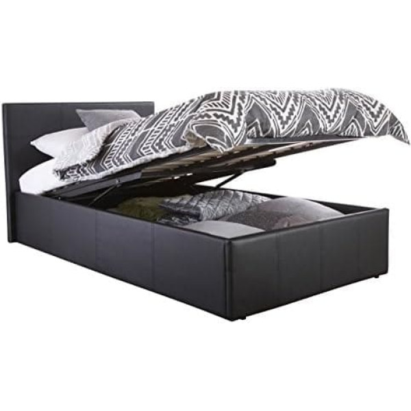 Right Deals Uk Denver Bett mit Aufbewahrung, 91 cm, Einzelbett, Ottoman, einfache Gasdruckfeder, Kunstleder, schwarz, 90 x 190 cm