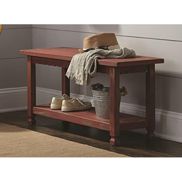 Alaterre Furniture Alaterre Rustic Cottage Bench, Red Antique Finish Bank, Holz, Rot antik