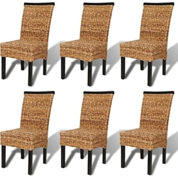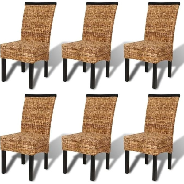 This set consists of 6 high quality hand woven Abaca chairs. The manila style chairs will be a great addition to your interior. The hardwood frame and the natural abaca leaves (banana leaves) make the chairs not only load-bearing but also aesthetically pleasing. In addition, the Abaca seats are very comfortable. If you are still looking for a decorative addition to your kitchen or dining room, these chairs are a good choice. The package includes 6 chairs. Only ship to mainland of Germany. Note: The following areas will not be shipped: ● Po. Box ● Peninsulas ● Islands; Product description These hand woven Abaca dining chairs will make a great addition to your kitchen or dining room. - Colour: brown with black - Material: solid mango wood + high-quality abacá leaves. - Dimensions: 47 x 50 x 97 cm (W x D x H). - Seat width: 47 cm. - Seat depth: 43 cm - Seat height from the ground: 47 cm. - Delivery includes 6 chairs. Only ship to mainland Germany. ! Note: The following areas will not be shipped: ● Bottom Box Peninsula. ● Islands This set consists of 6 quality hand woven Abaca chairs. The manila style chairs will be a great addition to your interior. The hardwood frame and the natural abaca leaves (banana leaves) make the chairs not only load-bearing but also aesthetically appealing. In addition, the Abaca seats are very comfortable. If you are still looking for a decorative furniture addition to your kitchen or dining room, these chairs are a good choice. The package includes 6 chairs. Please note: the chairs are hand woven from natural abaca, so there may be some colour variations.; Product description These hand woven Abaca dining chairs will make a great addition to your kitchen or dining room. - Colour: brown with black - Material: solid mango wood + high-quality abacá leaves. - Dimensions: 47 x 50 x 97 cm (W x D x H). - Seat width: 47 cm. - Seat depth: 43 cm - Seat height from the ground: 47 cm. - Delivery includes 6 chairs. Only ship to mainland Germany. ! Note: The following areas will not be shipped: ● Bottom Box Peninsula. ● Islands This set consists of 6 quality hand woven Abaca chairs. The manila style chairs will be a great addition to your interior. The hardwood frame and the natural abaca leaves (banana leaves) make the chairs not only load-bearing but also aesthetically appealing. In addition, the Abaca seats are very comfortable. If you are still looking for a decorative furniture addition to your kitchen or dining room, these chairs are a good choice. The package includes 6 chairs. Please note: the chairs are hand woven from natural abaca, so there may be some colour variations.; These hand woven Abaca dining chairs will make a great addition to your kitchen or dining room. - Colour: brown with black - Material: solid mango wood + high-quality abacá leaves. - Dimensions: 47 x 50 x 97 cm (W x D x H). - Seat width: 47 cm. - Seat depth: 43 cm - Seat height from the ground: 47 cm. - Delivery includes 6 chairs. Only ship to mainland Germany. ! Note: The following areas will not be shipped: ● Bottom Box Peninsula. ● Islands This set consists of 6 quality hand woven Abaca chairs. The manila style chairs will be a great addition to your interior. The hardwood frame and the natural abaca leaves (banana leaves) make the chairs not only load-bearing but also aesthetically appealing. In addition, the Abaca seats are very comfortable. If you are still looking for a decorative furniture addition to your kitchen or dining room, these chairs are a good choice. The package includes 6 chairs. Please note: the chairs are hand woven from natural abaca, so there may be some colour variations.