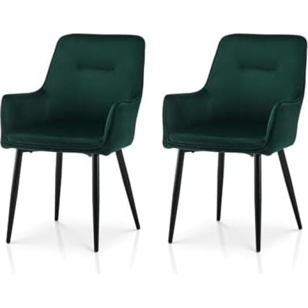 Tukailai Dining Room Chairs, Set of 2, Velvet Kitchen Chairs with Armrests, Leisure Chairs with Metal Legs and Cushions, Dining Room, Living Room, Bedroom, Reception Room, Restaurant, Green