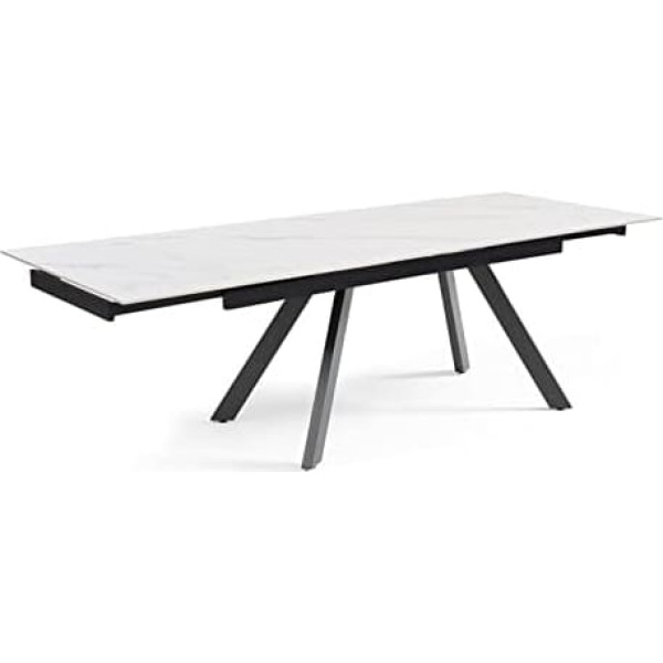 Meubletmoi Nevada 08 Extendable Dining Table 160/240 cm Ceramic White Marble Matt with 4 Bevelled Legs Metal Black