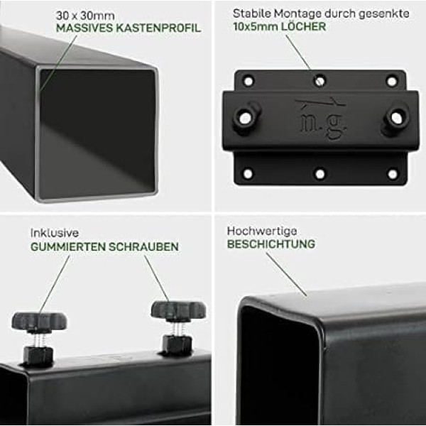 Do it yourself: Whether dining table, desk or conference table, whether in the living room, kitchen or office, thanks to our table top extension, you can expand your table flexibly. Our finish: the high-quality, black powder coating is durable, easy to clean and resistant. Box contents: per set you will receive 2 plug-in arms including brackets and rubberised locking screws for a mounting plate up to max. 60 cm. No wood screws are included, as they should be selected depending on the table top. Easy to assemble: Whether visiting family, friends or colleagues – if the dining table becomes too small, the arms on the table top extension can be inserted into the brackets attached under the table top in no time at all and fixed with the locking screws. Designed in Berlin: We see ourselves as your partner for DIY furniture construction. We ship quickly, reliably and are always at your side with advice and action. Inspirations and other products can be found in our brand store.