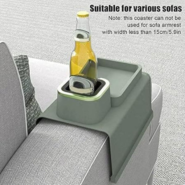 Large Capacity This sofa cup holder is designed for sofas with at least 6 inch wide armrests. Equipped with a sofa drink holder that can hold coffee cups, beverage cans, beer mugs or any cup with a width of up to 3.5 inches. MULTIFUNCTIONAL This adjustable tray features a large tray that can easily hold your phone, earplugs, remote control or snacks. Make life easier for all couch lovers by solving the biggest problem of keeping drinks or snacks on the couch. CONVENIENT TO USE You must be within arm's width when you sink into your sofa and enjoy movies or live sports, keep all your favorite drinks - hot or cold - safely on your sofa, couch, armchair or lounger. Stable Performance The armrest table of the sofa is made of high quality silicone and has 4 iron tubes at the bottom, which snap to the armrest of the furniture and keep it in place, barely moving, and provide more stability. WIDELY USED APPLICATION This compact portable armrest cup holder is a useful reclining accessory that is a must have in any home! You can use the cup holder for the couch at home, in the office or even on the go in the car.; Product description Specification: Item Type: Cup Holder Material: silicone + iron. Color: As picture show Application: for living room, balcony, sofa, couch. Product size: length: 2 cm/16.5 inches. Width: 32 cm / 12.6 inches. Cup holder height: 6.5 cm/2.6 inches. Height of tray edge: 2.5 cm / 1.0 inches. Gross weight: approx. 957 g / 33.8 oz. Package list: 1 x drink holder.; Product description Specification: Item Type: Cup Holder Material: silicone + iron. Color: As picture show Application: for living room, balcony, sofa, couch. Product size: length: 2 cm/16.5 inches. Width: 32 cm / 12.6 inches. Cup holder height: 6.5 cm/2.6 inches. Height of tray edge: 2.5 cm / 1.0 inches. Gross weight: approx. 957 g / 33.8 oz. Package list: 1 x drink holder.; Specification: Item Type: Cup Holder Material: silicone + iron. Color: As picture show Application: for living room, balcony, sofa, couch. Product size: length: 2 cm/16.5 inches. Width: 32 cm / 12.6 inches. Cup holder height: 6.5 cm/2.6 inches. Height of tray edge: 2.5 cm / 1.0 inches. Gross weight: approx. 957 g / 33.8 oz. Package list: 1 x drink holder.