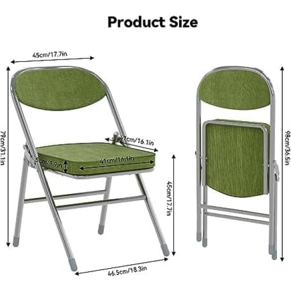 Comfortable folding chair: the ergonomic armchairs support your body optimally. Comfortable and soft corduroy surface, 5 cm thick seat padding, 40 cm wide seat - the chairs ensure high seating comfort. (each can hold up to 175 kg) Foldable design: folding chair, 180 degree folding design, uniform force, quick deployment in 1 second, convenient storage and folding, clever design, easy to transport to different places, eliminate space restrictions. Eliminate limited space and make it more flexible, perfect for families with limited space. 【Offer your guests the best place】: The comfortable folding chairs are ideal for long conferences, private events or as dining room chairs. Due to their low weight and compact size, they are easy to transport and can also be used as a camping chair or in the garden. Floor-friendly accent chair: all feet are equipped with anti-slip pads that make the pair of chairs non-slip and stable and protect your floor from scratches. All traps business: these lightweight fishing chairs are perfect for any occasion. Whether you're barbecuing, going to the beach, hanging out with your friends at festivals, hiking or just relaxing in your garden, this chair is for you. If you have any questions, please contact us and we will reply you within 24 hours.