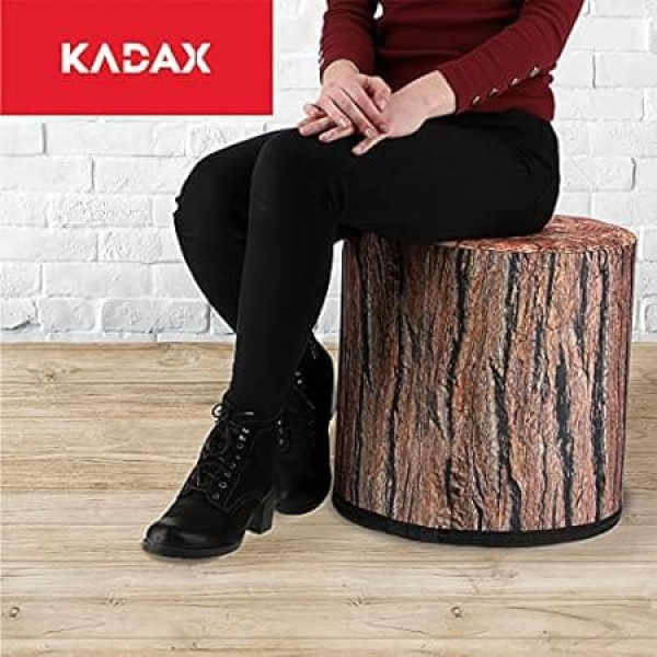 Kadax Pouf, Round Stool, Pouf, Diameter 40.5 x 41 cm, Wood Look, Pouf with Washable Cover, Bean Bag, Floor Cushion, Decorative Stool, Foot Stool, Seat Cushion, Fabric Stool (Acacia)