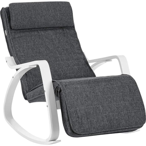 Songmics Birch Wood Rocking Chair, Relaxing Chair, Footrest Adjustable to 5 Positions, Imitation Linen Cover, Holds up to 150 kg