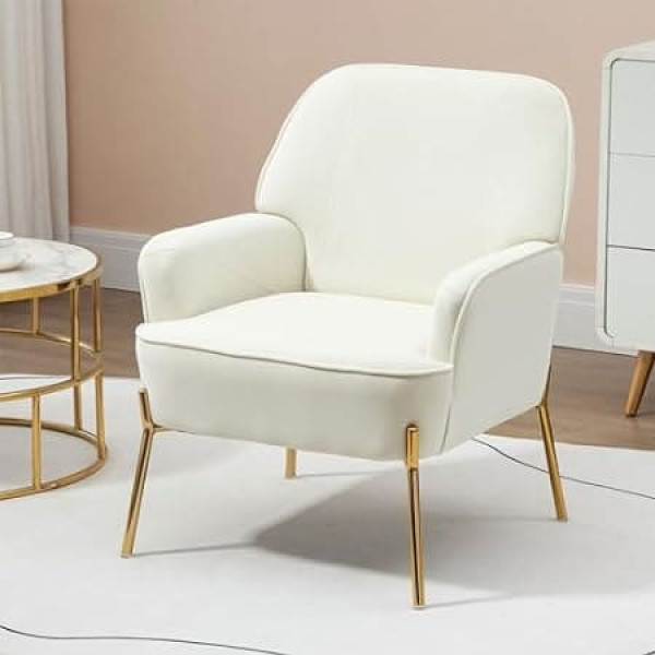 Sepnine Modern Living Room Armchair Velvet Lounge Chair for Living Room and Bedroom Sofa Chair up to 135 kg White