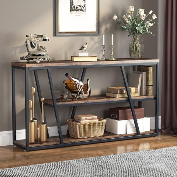 【3-Tier Industrial Console Table】:By combining simple geometric construction with rustic grain, this foyer table for entryway brings a touch of industrial inspiration to any room; and the open design leaves room for inspired styling. Ideal for a variety of decoration styles, such as rustic, industrial or modern furnishings, etc Plenty of storage space: measuring 150 x 30 x 80 cm, this entrance table offers plenty of storage space for your daily use. It can be placed in the entrance area to catch keys and mail. Standing in the living room to display your favourite pictures or collectibles, sitting behind the sofa for books and magazines, or serve as a sideboard for drinks and snacks Multi-purpose console table with storage: This console table with open shelves has a high practicality, it can be used not only as a console table, but also as a sofa table, entryway table and buff sideboard. Take it home to spruce up your living room or entryway with this charming table RELIABLE QUALITY & SOLID CONSTRUCTION Made of high quality particle board and solid metal (0.78 inch x 0.78 inch width), this Tribesigns sofa table can withstand up to 130The adjustable foot pads can be used on uneven ground and prevent the floor from scratching. Thanks to its robust structure, this rustic entryway table will provide you with a long service life Easy to assemble: You will receive detailed assembly instructions for this hallway table. All required parts, tools and instructions are included. Tribesigns provides 12 months quality assurance and lifetime professional customer service. If you have any questions, please feel free to contact us