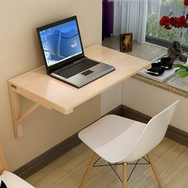 Folding Wall Table, Folding Wall Table, Wall Mounted Floating Folding Table Made of Solid Wood, Home Office Desk, Laptop Desk, Small Room Table, Dining Table