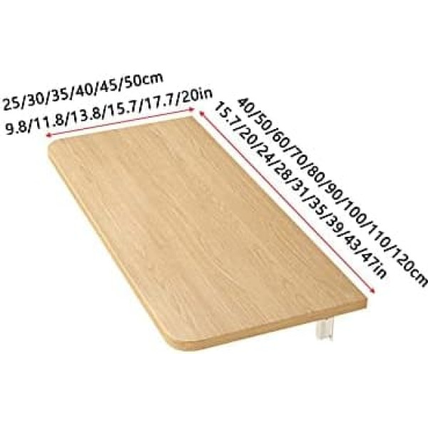 COLLAPSIBLE DESIGN SPACE SAVING This small table can be firmly fixed on the wall and folded when used. After use, fold it down so far that it fits tightly against the wall, and concealed, it takes up little space on the wall. It is very convenient for daily use and saves you a lot of space. It is a perfect replacement for bulky, old fashioned tables. NATURAL & ENVIRONMENTAL PROTECTION Made of high quality rubber wood, naturally without additives, solid wood tabletop, healthy and environmentally friendly, strong and compact, durable The surface is protected by varnish, smooth and bright without burrs and easy to clean. The sturdy metal bracket can be firmly attached to the wall without wobbling or falling off. Wide Application This folding table can be used as a storage cabinet for your meals, and can also be used as a work table for children, private office table, laptop table and coffee table for two couples, etc. Bring comfort to your life. Small and exquisite: compared with ordinary tables, this folding table is lighter and more convenient. The rounded corners of the table are safe and do not hurt your hands, and the natural wood structure is more noble and unique and does not fade. If you have any questions during the purchase or use, please contact us in time. We will be happy to help you. Please contact us in time for any questions we will answer you within 24 hours. Your satisfaction makes us the last wish I wish you a lot of fun shopping, thank you; Product description This folding wall table is compact and practical, space-saving and is very suitable for installation in the living room, bedroom, study, kitchen, dining room, bar, office, cafe, balcony and other places. The folding table is easy and convenient to use, affordable, durable and beautiful, adding a sense of creativity and fashion to your home. The folding table made of solid wood is healthier and environmentally friendly. So you stay close to nature and feel fresh and beautiful. Name: wall folding table Colour: wood colour. Material: fine rubber wood. Size: adjustable (length x width). Length: 50-120cm Width: 30-50 cm Packaging: 1 x folding hanging table + metal bracket + installation accessories. Note: 1. If you have any questions during the purchase process, please send us an email, we will be happy to help you.; Product description This folding wall table is compact and practical, space-saving and is very suitable for installation in the living room, bedroom, study, kitchen, dining room, bar, office, cafe, balcony and other places. The folding table is easy and convenient to use, affordable, durable and beautiful, adding a sense of creativity and fashion to your home. The folding table made of solid wood is healthier and environmentally friendly. So you stay close to nature and feel fresh and beautiful. Name: wall folding table Colour: wood colour. Material: fine rubber wood. Size: adjustable (length x width). Length: 50-120cm Width: 30-50 cm Packaging: 1 x folding hanging table + metal bracket + installation accessories. Note: 1. If you have any questions during the purchase process, please send us an email, we will be happy to help you.; This folding wall table is compact and practical, space-saving and is very suitable for installation in the living room, bedroom, study, kitchen, dining room, bar, office, cafe, balcony and other places. The folding table is easy and convenient to use, affordable, durable and beautiful, adding a sense of creativity and fashion to your home. The folding table made of solid wood is healthier and environmentally friendly. So you stay close to nature and feel fresh and beautiful. Name: wall folding table Colour: wood colour. Material: fine rubber wood. Size: adjustable (length x width). Length: 50-120cm Width: 30-50 cm Packaging: 1 x folding hanging table + metal bracket + installation accessories. Note: 1. If you have any questions during the purchase process, please send us an email, we will be happy to help you.