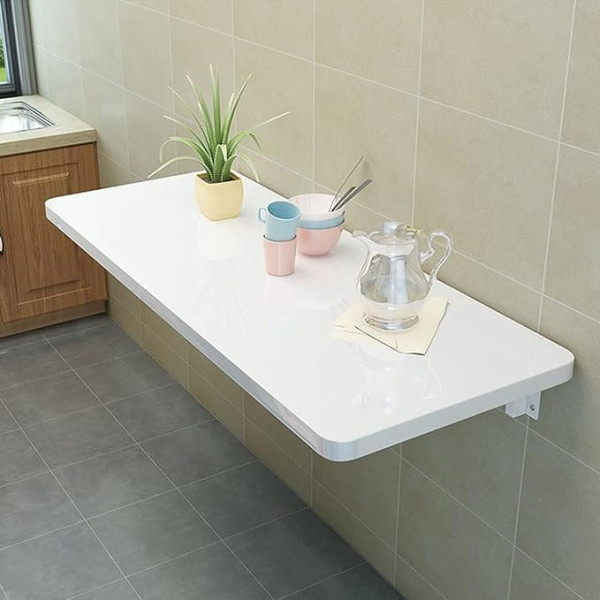 wandklapptisch klapptisch Wand wandtisch klappbar, Weiße, an der Wand montierte Werkbank, zusammenklappbarer Wandtisch, Frühstücksbartische, Computertisch-Arbeitsplatz, für Garagenschuppen i