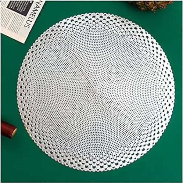 Bangha Tischset 6/4 stücke Blatt Tischsets Restaurant Runde Umweltfreundliche PVC Hohl Mahlzeit Pads Anti-Heißer Esstisch Set Weave Muster Matten Tischset Abwischbar (Color : Silver, Size : Diameter 38cm)
