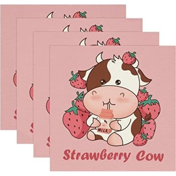 Tbouobt Fabric Placemats, Washable Placemats for Dining Table, Set of 4, Strawberry Cow Animal Cartoon