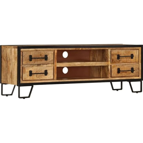This solid mango wood TV stand fits perfectly with your TV and keeps your media devices and carriers neatly organized. This industrial style wooden TV stand will be the focal point in your living or entertainment area It can also be used as a sideboard, lowboard, etc. The TV cabinet is made of solid mango wood, which is stable, durable and beautiful, and the craftsmanship contributes to its spectacular retro style Every step of the process is carried out with the utmost care, be it polishing, painting or varnishing The workmanship and the beautiful wood grain make each piece of furniture unique and slightly different from the next; Product description This industrial style wooden TV stand will be the focal point in your living or entertainment area. It can also be used as a sideboard, lowboard, etc. The TV cabinet is made of solid mango wood, which is stable, durable and beautiful, and the craftsmanship contributes to its spectacular retro style. Every step of the process is carried out with the utmost care, be it polishing, painting or varnishing. The workmanship and the beautiful wood grain make each piece of furniture unique and slightly different from the next. The steel legs provide extra stability. The 2 compartments and 4 drawers provide ample space for DVD players, game consoles, streaming devices and media carriers to keep neatly organized. IMPORTANT NOTICE: Colours vary from piece to piece, making each of our TV cabinets unique and will be sent at random. Material: solid mango wood and steel. Dimensions: 120 x 30 x 39.9 cm (W x D x H). With 2 compartments and 4 drawers. Polished, painted and varnished; Product description This industrial style wooden TV stand will be the focal point in your living or entertainment area. It can also be used as a sideboard, lowboard, etc. The TV cabinet is made of solid mango wood, which is stable, durable and beautiful, and the craftsmanship contributes to its spectacular retro style. Every step of the process is carried out with the utmost care, be it polishing, painting or varnishing. The workmanship and the beautiful wood grain make each piece of furniture unique and slightly different from the next. The steel legs provide extra stability. The 2 compartments and 4 drawers provide ample space for DVD players, game consoles, streaming devices and media carriers to keep neatly organized. IMPORTANT NOTICE: Colours vary from piece to piece, making each of our TV cabinets unique and will be sent at random. Material: solid mango wood and steel. Dimensions: 120 x 30 x 39.9 cm (W x D x H). With 2 compartments and 4 drawers. Polished, painted and varnished; This industrial style wooden TV stand will be the focal point in your living or entertainment area. It can also be used as a sideboard, lowboard, etc. The TV cabinet is made of solid mango wood, which is stable, durable and beautiful, and the craftsmanship contributes to its spectacular retro style. Every step of the process is carried out with the utmost care, be it polishing, painting or varnishing. The workmanship and the beautiful wood grain make each piece of furniture unique and slightly different from the next. The steel legs provide extra stability. The 2 compartments and 4 drawers provide ample space for DVD players, game consoles, streaming devices and media carriers to keep neatly organized. IMPORTANT NOTICE: Colours vary from piece to piece, making each of our TV cabinets unique and will be sent at random. Material: solid mango wood and steel. Dimensions: 120 x 30 x 39.9 cm (W x D x H). With 2 compartments and 4 drawers. Polished, painted and varnished