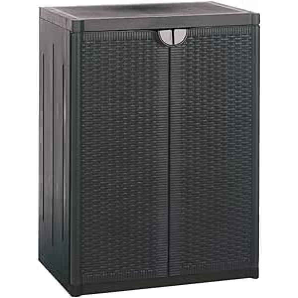 Rattan Effect cupboard with 2 shelves brown. Suitable for: Garden, balcony, terrace, attic, basement, workshop. Ideal for organising and storing household and garden items. Dimensions (L x W x H): 65 x 45 x 88 cm (H x W x H). For indoor and outdoor use, made from UV and weather resistant, high-quality polypropylene (plastic).; Product description MÖBEL RATTAN BRAUN NIEDRIG 65X45X88; Product description MÖBEL RATTAN BRAUN NIEDRIG 65X45X88; MÖBEL RATTAN BRAUN NIEDRIG 65X45X88