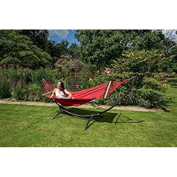 High-quality frame for your Tropilex hammock: the frame is available in either 100% FSC wood or metal. We offer you 3 different designs: Wood, Arc & Easy. Our wooden frames are made exclusively from sustainable wood and are FSC certified. Our metal frames are prepared with special, scratch-resistant coatings. For all Tropilex single hammocks and hammocks with a total length of 290 - 340 cm. The maximum capacity is 160 kg. The most stable frame on the market: Our Tropilex frames for your hammock are designed particularly stable and have a higher load capacity thanks to the special design. Our wooden finishes are made exclusively from high-quality and treated pine wood. Our metal frames are made of durable metal and specially coated to prevent scratches. All frames can be flexibly adjusted to your needs via the included chains. The right frame for every type: our wooden frames look great both indoors and in the garden. Thanks to the treated wood, you don't have to worry about your frame even in heavy rain. Our metal frames are also weatherproof. Easy & Arc differ especially in assembly: the Easy\; Product description Tropilex Arc single hammock frame is super robust metal hammock stand. The tubes have an extra large diameter and the special construction provides more stability and can carry additional weight. You can also easily adjust the 'bow' with the included chains. In this way, you can hang many different hammocks in it. Thanks to the recently developed metal coating, this stand is weather-resistant. The coating also makes the stand more scratch-resistant. Suitable for all Tropilex single hammocks and for hammocks with a total length of 290 - 340 cm. The maximum load capacity is 160 kg. See more; Product description Tropilex Arc single hammock frame is super robust metal hammock stand. The tubes have an extra large diameter and the special construction provides more stability and can carry additional weight. You can also easily adjust the 'bow' with the included chains. In this way, you can hang many different hammocks in it. Thanks to the recently developed metal coating, this stand is weather-resistant. The coating also makes the stand more scratch-resistant. Suitable for all Tropilex single hammocks and for hammocks with a total length of 290 - 340 cm. The maximum load capacity is 160 kg. See more; Tropilex Arc single hammock frame is super robust metal hammock stand. The tubes have an extra large diameter and the special construction provides more stability and can carry additional weight. You can also easily adjust the 'bow' with the included chains. In this way, you can hang many different hammocks in it. Thanks to the recently developed metal coating, this stand is weather-resistant. The coating also makes the stand more scratch-resistant. Suitable for all Tropilex single hammocks and for hammocks with a total length of 290 - 340 cm. The maximum load capacity is 160 kg. See more; Tropilex Arc single hammock frame is super robust metal hammock stand. The tubes have an extra large diameter and the special construction provides more stability and can carry additional weight. You can also easily adjust the 'bow' with the included chains. In this way, you can hang many different hammocks in it. Thanks to the recently developed metal coating, this stand is weather-resistant. The coating also makes the stand more scratch-resistant. Suitable for all Tropilex single hammocks and for hammocks with a total length of 290 - 340 cm. The maximum load capacity is 160 kg.; See more