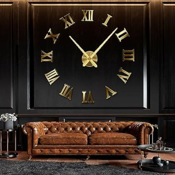 R&M ORIENT® 3D Wall Clock Large Modern Mute DIY - Roman Numerals - Luxury Decoration Gift - Wall Sticker - Clocks for Office Living Room Bedroom Decor Home Office Quartz Clock (C-Gold)