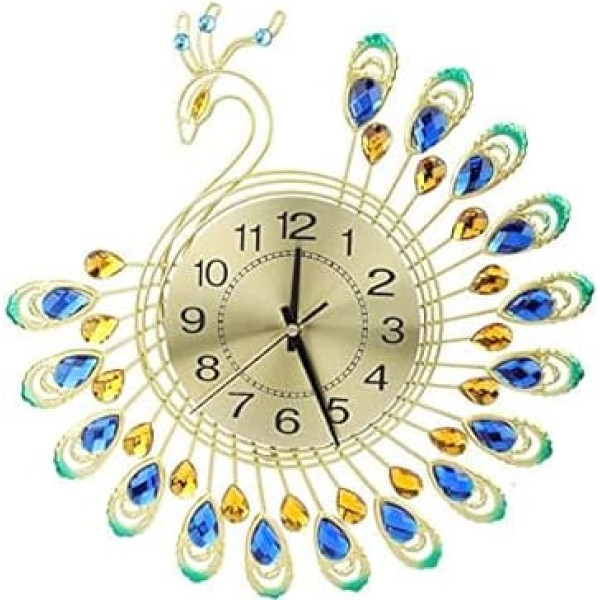 Exquisite craftsmanship: the shape of a peacock, middle diamond, brushed metal dial and beautiful hand-painted colours make the wall clock very delicate, not only a wall clock, but also an exquisite decoration. Iron welding: the frame of the wall clock is made of a high-quality metal frame and the connections are welded. The surface of the frame is sprayed with a plastic treatment that can be used for a long time and prevents the paint from falling off. Quiet movement: the wall clock is equipped with a high-quality sweeper that is quiet and does not disturb you and offers you a high-quality experience. Easy installation: the installation of the wall clock is very simple, there are nails for hanging the clock in the packaging and the operation is easy. Fashionable all match: the wall clock has a stylish shape, is suitable for houses of different styles and can also be used as an exquisite gift.