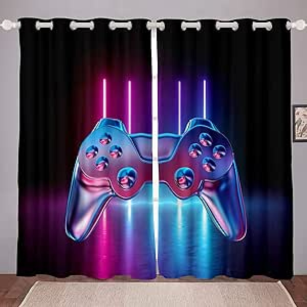 Tbrand Gamepad Opaque Curtains for Boys and Teens, 54 x 46 Inch, Modern Game Window Curtain, Video Game Curtains for Kids and Girls, Novelty, Gradient, Action Buttons