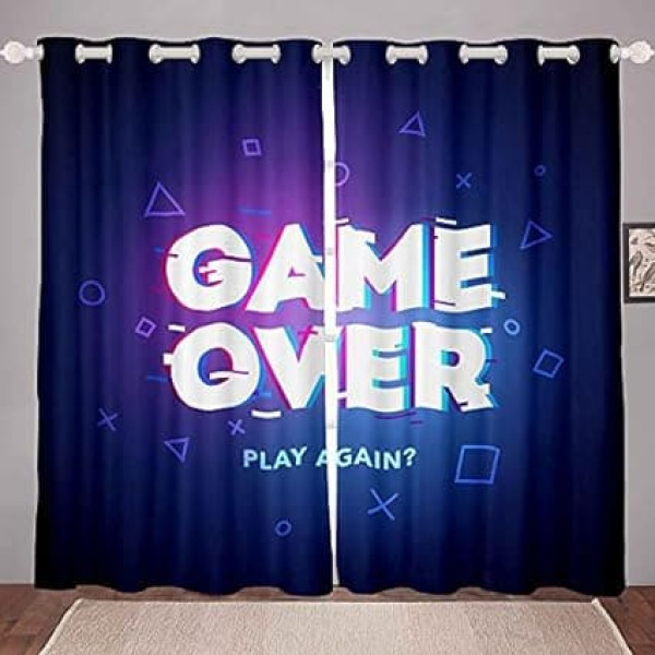 Loussiesd Gamer Curtain for Bedroom Boys Computer Game Room Curtain for Children Teenagers Electronic Games Gamer Thermal Curtain Blue Purple Games Curtains W 46 x L 54 cm