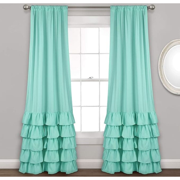 Lush Decor Allison Ruffle Curtains, Window Panel Drapes Set for Living, Dining Room, Bedroom (Pair), 84 x 40 inches, Aqua
