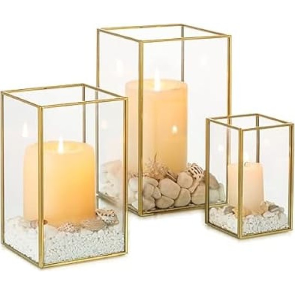 High-quality materials: NUPTIO glass candle holder is made of high-quality tempered glass, more durable. The combination of crystal clear glass and the clean lines of the metal frame is simple and stylish. Perfect for a variety of decor styles of modern, farmhouse, bohemian, etc. Size: you will receive 1 set (3 pieces) of rectangular glass lantern candle holders in 3 different sizes. (Flowers and candle holders are not included). The heights are 20.5 cm, 16.6 cm and 12 cm, while the widths and lengths are 12 cm, 10 cm and 8 cm. Uses: Hurricane lantern creates a romantic atmosphere for your event. Suitable for wedding, party, birthday, celebration, anniversary, Diwali, Valentine's Day, etc. As a floor decoration, add warm atmosphere to stairs, living room floor, fireplace floor. As home decoration ornaments, add sophistication and elegance to your kitchen, living room, bedroom, bathroom, shelf, office, cafe, bar. Versatile: as a candle holder, you can place pillar candles, LED candles for table centres. As a hurricane vase, you can place flowers, dried flowers, ribbons, dolls to decorate your event. It can be used as a decorative element to decorate your house or to store your makeup brushes, pens, etc. The tall candle holders are carefully packed with foam board. If you receive the product with breakage, scratches and other problems, please contact us and we will replace or refund it for you. We are committed to providing our customers with satisfactory service.