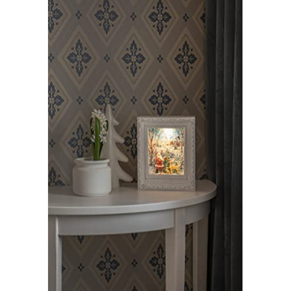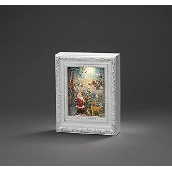 Konstsmide LED Water Lantern, Antique White, Picture Frame, Santa Claus with Animals, with On/Off Switch, 5H Timer, 1 Warm White Diode, Battery Operated & USB, Indoor, Battery: 3 x AA 1.5 V (Excl.)