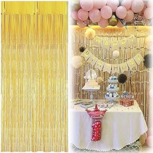 Material: Our metallic tinsel curtains are made of high-quality materials that are durable and durable. Each curtain consists of numerous thin, metallic foil strips that sparkle and sparkle in the light. The tinsel-like design adds a unique and stylish touch to your rooms. Easy to install: with a width of 1 metre and a length of 2.5 metres, our curtains fit easily on any door or wall. You can easily attach them and cut them as you like to achieve the desired size. The curtains are lightweight and can be moved effortlessly, allowing you to place them flexibly according to your wishes. Environmentally friendly: our curtains are safe and non-toxic, so you don't have to worry about using them in children's rooms or play areas. They are easy to wipe clean and can be easily cleaned if necessary. Wide range of applications: these metallic tinsel curtains are not only intended for parties, but also for everyday use. You can add a luxurious touch to your home by using them as a room divider or decorate doors and windows with it. Use them on special occasions such as birthdays, weddings, Christmas parties or other festive events to give your guests that special something. Order our metallic tinsel curtains today and transform your rooms into a sparkling paradise! Add sparkle and glamour to your events and create an unforgettable atmosphere. Let yourself be enchanted by the beauty of these curtains and enjoy the admiring glances of your guests. Make your room eye-catching with our high-quality metallic tinsel curtains.; Product description Especificaciones Product name: metallic tinsel curtains. Material: PET aluminium foil. Product colour: gold. Size: 1 x 2.5 m. Quantity: 1 piece. Packaging: plastic bags. Package includes: 1 x gold tinsel curtains. Carácter These metallic curtains are equipped with high-quality double-sided tape. Simply tear off the double-sided adhesive tape from the back and stick it to the wall. Easy to install, convenient and fast. Tinsel glitter curtain is very suitable for hanging on the door or wall. It is perfect for photographing as a background. It is decorative and pleasant on the eye, creates a festive atmosphere and brings joy. Discover our metallic tinsel curtains that are perfect for different occasions and transform your rooms into a sparkling eye-catcher. With their shiny finish, these curtains can create a glamorous atmosphere in your home, office or party room.; Product description Especificaciones Product name: metallic tinsel curtains. Material: PET aluminium foil. Product colour: gold. Size: 1 x 2.5 m. Quantity: 1 piece. Packaging: plastic bags. Package includes: 1 x gold tinsel curtains. Carácter These metallic curtains are equipped with high-quality double-sided tape. Simply tear off the double-sided adhesive tape from the back and stick it to the wall. Easy to install, convenient and fast. Tinsel glitter curtain is very suitable for hanging on the door or wall. It is perfect for photographing as a background. It is decorative and pleasant on the eye, creates a festive atmosphere and brings joy. Discover our metallic tinsel curtains that are perfect for different occasions and transform your rooms into a sparkling eye-catcher. With their shiny finish, these curtains can create a glamorous atmosphere in your home, office or party room.; Especificaciones Product name: metallic tinsel curtains. Material: PET aluminium foil. Product colour: gold. Size: 1 x 2.5 m. Quantity: 1 piece. Packaging: plastic bags. Package includes: 1 x gold tinsel curtains. Carácter These metallic curtains are equipped with high-quality double-sided tape. Simply tear off the double-sided adhesive tape from the back and stick it to the wall. Easy to install, convenient and fast. Tinsel glitter curtain is very suitable for hanging on the door or wall. It is perfect for photographing as a background. It is decorative and pleasant on the eye, creates a festive atmosphere and brings joy. Discover our metallic tinsel curtains that are perfect for different occasions and transform your rooms into a sparkling eye-catcher. With their shiny finish, these curtains can create a glamorous atmosphere in your home, office or party room.