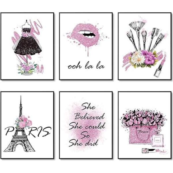 Pink Fashion Wall Art Girls Room Decor Makeup Room Artwork Prints Paris Perfume Flower Lipstick Canvas Art Poster Wall Decoration for Bedroom 11 x 14 Inches (27.9 x 35.6 cm) Unframed