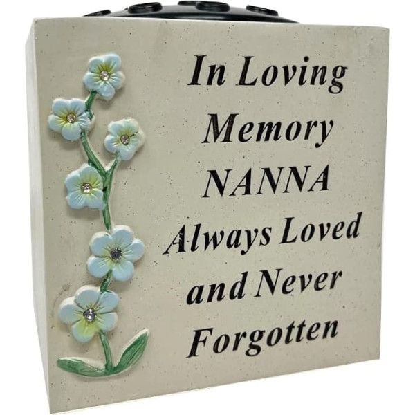 Grave Flower Holder/Vase - A grave memorial flower pot with a personal message for your loved one. A peaceful and decorative way to remember someone special. White plastic flower pot, specially designed for your special someone. A simple but very beautiful flower vase with flower and personal quote SOURCE OF STRENGTH - These personalised white memorial diamonds/flower holders help you deal peacefully with sadness and grief. They provide strength, inspiration and encouragement in times of need Significant Emotions The beautiful flower bowl with diamond design of the vase with a special verse glorifies the emotions of love, care and affection you have for your deceased loved ones in the best way possible. The vase is decorated with a pretty flower decoration, making it an ideal sentimental memorial vase for your loved ones, deceased Spike-shaped ornament - This memorial vase/flower holder has a unique spike shape. The addition of rose decoration on this vase makes it a beautiful memorial sign for your special people INSCRIPTION WITH A PERSONALISED VERSE The vase/flower holder is engraved with a special sentimental verse for your loving nanna. It says: \; Product description Grave flower bowl: Two people are always caring, loving and friendly. These are the happy memories you both left behind. A grave flower pot with a personal message for your loved ones. A peaceful and decorative way to remember someone special. Our family members bring us face to face with our former selves and remind us how complicated we are connected in each other's lives. Undoubtedly, love within a family is pure, sentimental and unabridged. To honor this beautiful family relationship, we made a beautiful personalized grave vase/flower holder for your special people with a special verse. This memorial vase shows how much your loved ones are. Features: Flower vase with rhinestones, white plastic flower pot Decorated with embossed love heart and white lily Made from durable cast stone effect resin for outdoor use.; Product description Grave flower bowl: Two people are always caring, loving and friendly. These are the happy memories you both left behind. A grave flower pot with a personal message for your loved ones. A peaceful and decorative way to remember someone special. Our family members bring us face to face with our former selves and remind us how complicated we are connected in each other's lives. Undoubtedly, love within a family is pure, sentimental and unabridged. To honor this beautiful family relationship, we made a beautiful personalized grave vase/flower holder for your special people with a special verse. This memorial vase shows how much your loved ones are. Features: Flower vase with rhinestones, white plastic flower pot Decorated with embossed love heart and white lily Made from durable cast stone effect resin for outdoor use.; Grave flower bowl: Two people are always caring, loving and friendly. These are the happy memories you both left behind. A grave flower pot with a personal message for your loved ones. A peaceful and decorative way to remember someone special. Our family members bring us face to face with our former selves and remind us how complicated we are connected in each other's lives. Undoubtedly, love within a family is pure, sentimental and unabridged. To honor this beautiful family relationship, we made a beautiful personalized grave vase/flower holder for your special people with a special verse. This memorial vase shows how much your loved ones are. Features: Flower vase with rhinestones, white plastic flower pot Decorated with embossed love heart and white lily Made from durable cast stone effect resin for outdoor use.