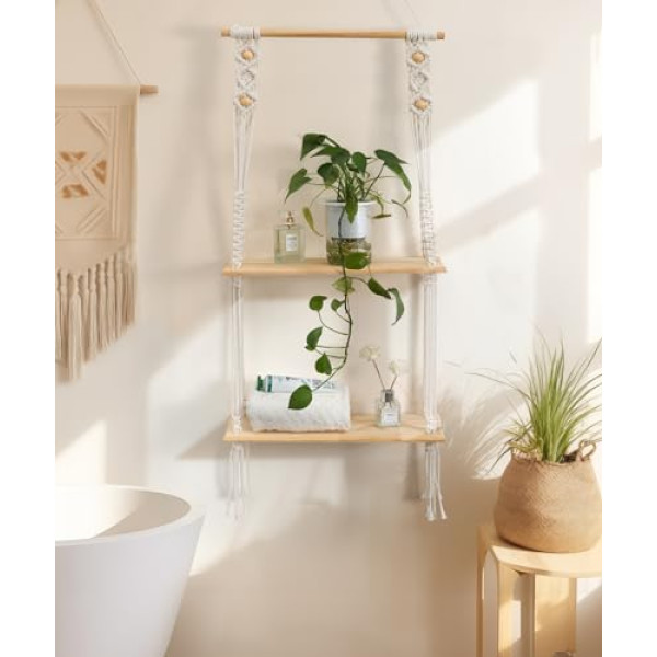 Afuly Wall Shelf Wooden Shelf Wall Boho Decorative Hanging Shelf Macrame Wall Decoration Balcony Bathroom Living Room