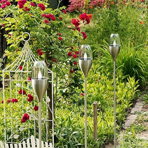 Navaris 4x LED Solar Stainless Steel Garden Torch 8.5 x 112 cm Garden Torch Solar Lights Set Outdoor Candle Effect Solar Torch Dark Grey