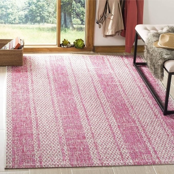 SAFAVIEH Indoor & Outdoor Contemporary Rug - Courtyard Collection Short Pile, Light Grey and Fuchsia, 201 x 290 cm