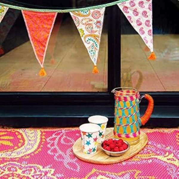Talking Tables 180 x 120 cm Pink & Yellow Woven Waterproof Outdoor Rug | Lightweight Plastic Mat with Paisley Print Pattern | For Garden, Patio, Bathroom, Picnic, Boho Rug-PAIS